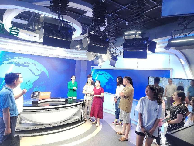 7月5日下午第一站,大家来到蕲春县融媒体中心调研县域城市融媒体发展现状。蕲春县融媒体中心相关负责人介绍了有关情况,大家对蕲春县融媒体中心进行考察,现场体验了电视节目制作、播音员工作实况、村村通工程状况等场景。