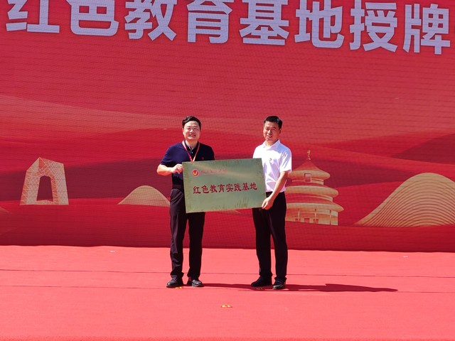 在9月29日上午的吴店镇红色文化场馆授牌仪式上,尹青山代表学院为吴店镇颁授“红色教育实践基地”牌匾,为我校进行红色教育开辟了新的实践场所。张军教授作为新四军研究会会长发表致辞。