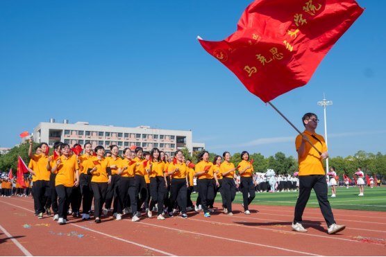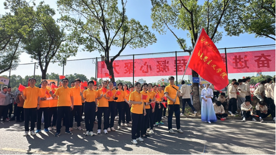 开幕式上,我院教职工方阵穿着统一服装,迈着有力的步伐,挥舞国旗,高喊“马院马院、一马当先”的口号,齐步走过主席台,展现了学院昂扬向上的精神风貌。