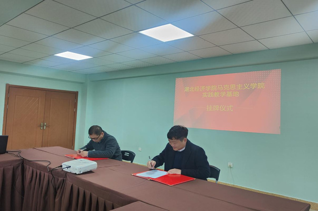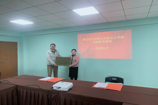 杏福园董事长郭杨福先生与德法教研室主任吕梦醒共同为实践教学基地揭牌。郭杨福先生表示欢迎湖北经济学院师生来园区开展教学实践活动,与太阳成tyc7111cc集团的合作共建将为园区发展注入新鲜血液,园区也会为太阳成集团tyc7111师生的实践调研活动提供支持。