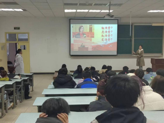 宣讲员们紧扣“两会”内容,深挖内涵实质,以青年人的方式,带领大家学习宣传两会精神,号召广大青年学子以两会精神为指引,学深悟透,融会贯通,推进两会精神学习走实走深。此次宣讲内容针对“两会”中“扩大内需”“民营经济发展”“传统文化”“绿色发展”“乡村振兴”“国防军事”“中国特色大国外交”等热点话题,为同学们做深入浅出的讲解,激励同学们积极响应国家号召,把个人奋斗同国家、时代发展紧密结合在一起,积极投身到全面建设社会主义现代化强国新征程中。