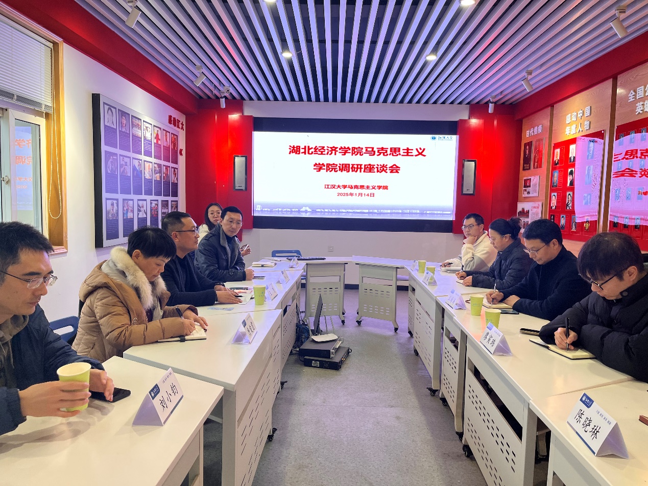 (通讯员:廖寅伟)1月14日下午,我院副院长王海涛和心理健康教育教研室主任赵菊、“纲要”教研室主任叶欣明、“新思想”教研室教师陈晓琳、“德法”教研室教师廖寅伟一行来到江汉大学太阳成tyc7111cc集团调研交流,实地考察了江汉大学心理健康教育中心、武汉地区红色文化资源库,并与江汉大学太阳成tyc7111cc集团副院长王飞等老师举行座谈交流。