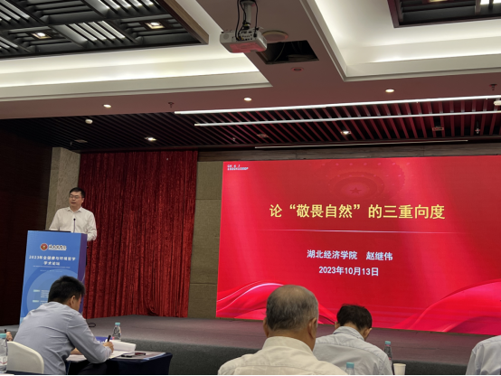 赵继伟教授在开幕式后做了《论“敬畏自然”的三重向度》的主旨报告,冯连军副教授在第一分论坛做了《论习近平生态文明思想的内容结构》的发言。我院两位教师的发言受到与会专家学者的一致好评。