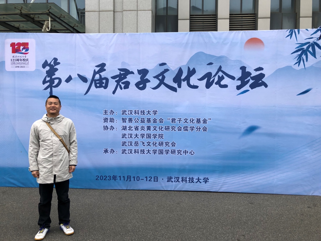 11月11-12日,黄敦兵教授受邀参加了第八届全国君子文化论坛。论坛由武汉科技大学主办,全国智善公益基金会“君子文化基金”资助,湖北省炎黄文化研究会、武汉大学国学院、武汉岳飞研究会协办,武汉科技大学国学研究中心承办,来自全国各地的近200名专家学者参加。